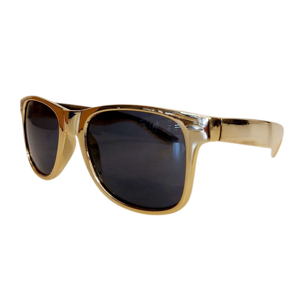 • Goldfarbene Sonnenbrille (Metallic-Optik; Gestell aus Kunststoff; Schutzfaktor: UV 400).
